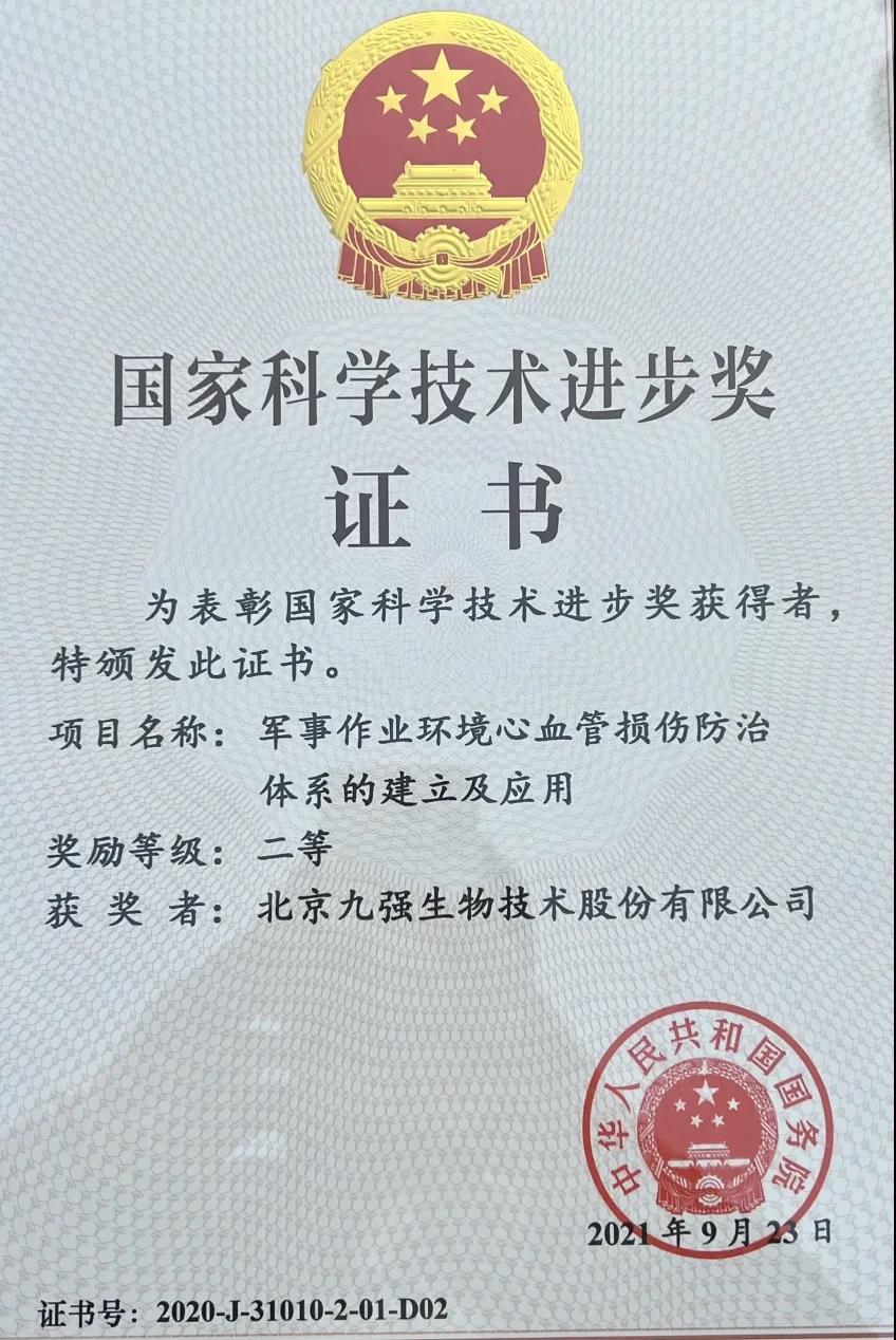 2021年11月3日,2020年度國家科學技術(shù)獎勵大會在人民大會堂正式召開。中國人民解放軍總醫(yī)院何昆侖、田亞平兩位教授團隊領(lǐng)銜,與北京九強生物技術(shù)股份有限公司共同合作完成的“軍事作業(yè)環(huán)境心血管損傷防治體系的建立及應用”榮獲2020年度國家科技進步二等獎。九強生物總經(jīng)理劉希出席了頒獎現(xiàn)場并領(lǐng)獎。