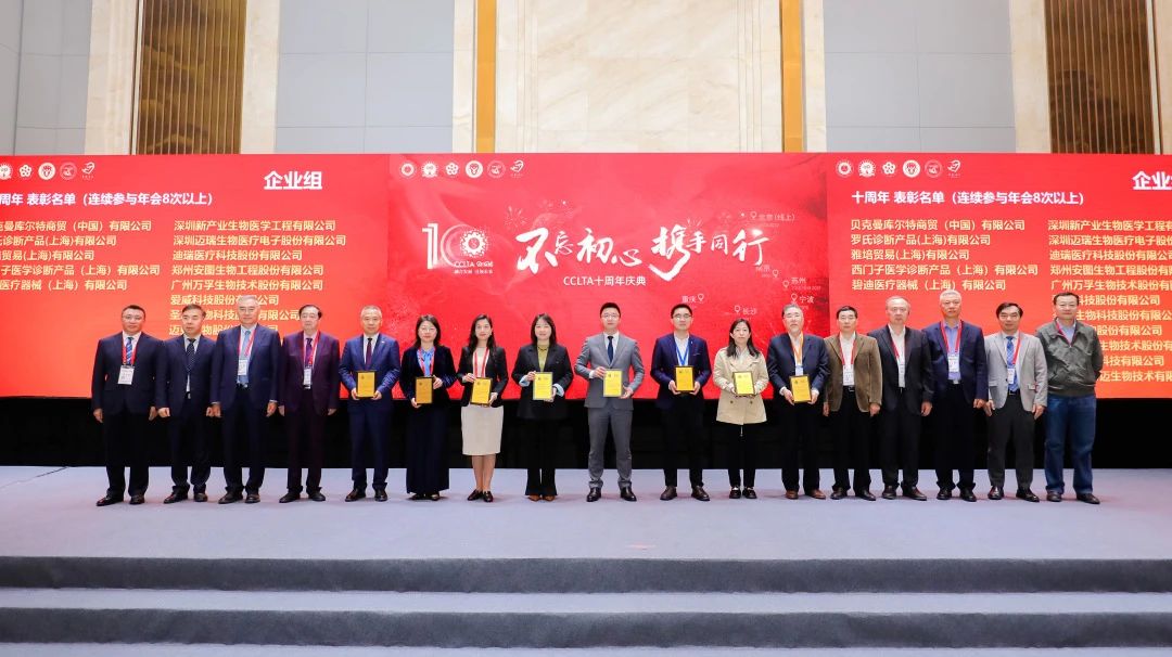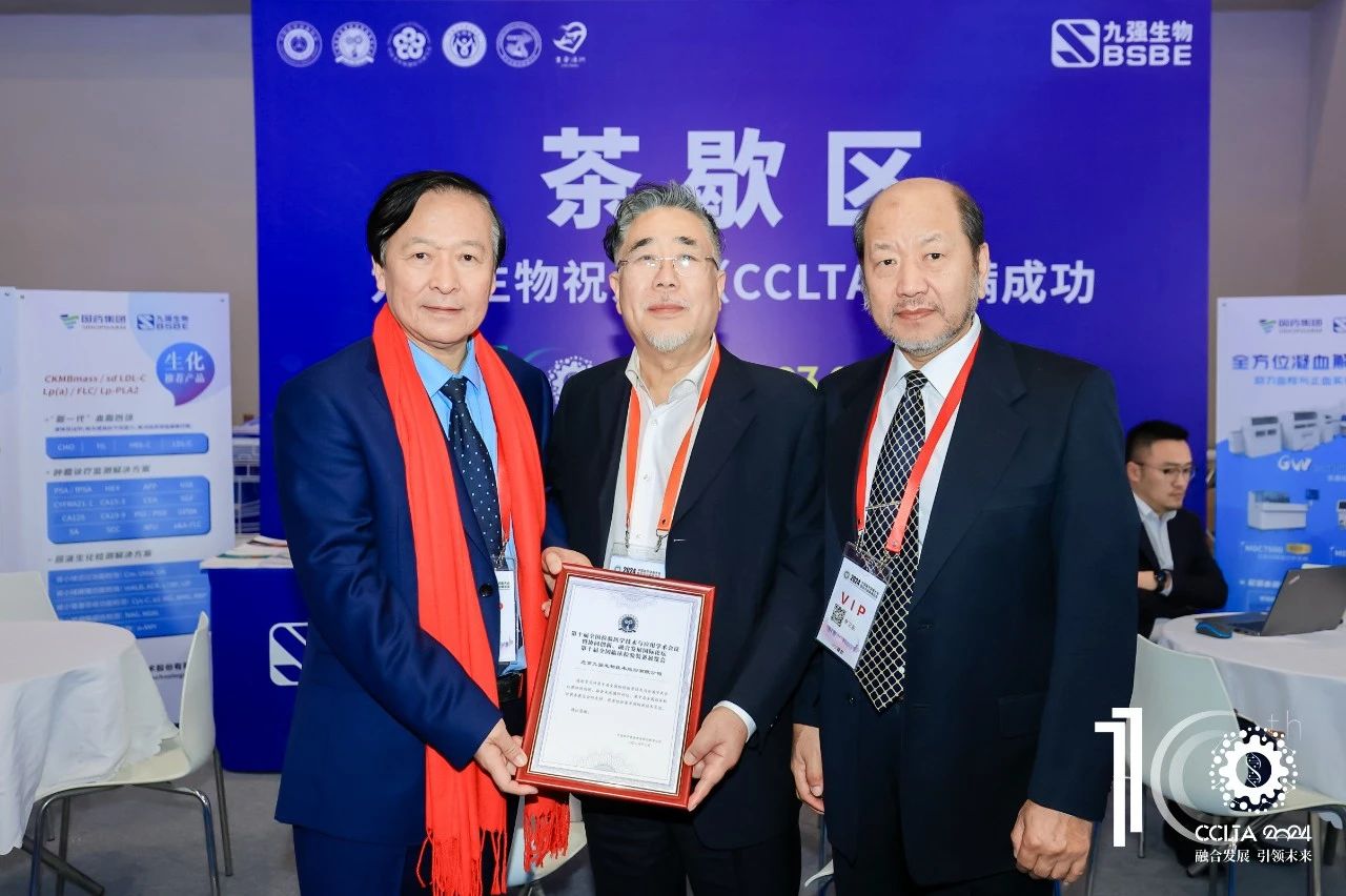 大會(huì)期間,中國(guó)醫(yī)學(xué)裝備協(xié)會(huì)檢驗(yàn)醫(yī)學(xué)分會(huì)第三屆委員會(huì)第三次全體委員會(huì)議同步召開(kāi),九強(qiáng)生物董事長(zhǎng)鄒左軍先生出席并上臺(tái)領(lǐng)取十周年企業(yè)感謝狀。CCLTA迎來(lái)十周年,在深耕學(xué)術(shù)、以發(fā)展為中心的精耕理念下,實(shí)現(xiàn)檢驗(yàn)醫(yī)學(xué)事業(yè)的大步拓新。