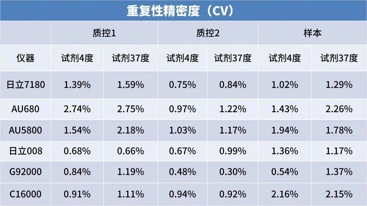 精密度優(yōu):各機型高低值質控、樣本CV<3%